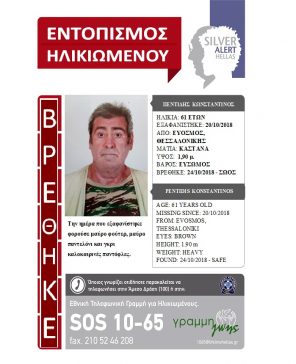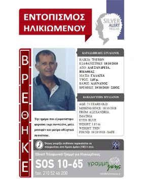 Ευρεθέντες 19 Οκτωβρίου, 2018 Βρέθηκε σώος! Η περιπέτεια του κ. Στυλιανού Καρασαββίδη έληξε, δίνοντας αίσιο τέλος στην αγωνία των δικών του […]