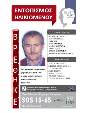 Ευρεθέντες 16 Οκτωβρίου, 2018 Βρέθηκε σώος! Η περιπέτεια του κ. Ιωάννη Σακαλή έληξε, δίνοντας αίσιο τέλος στην αγωνία των δικών του […]
