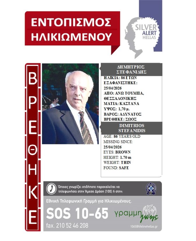 Η περιπέτεια του κ. Δημητρίου Στεφανίδη έληξε, δίνοντας αίσιο τέλος στην αγωνία των δικών του ανθρώπων που τον αναζητούσαν. Ο 62χρονος, βρίσκεται πλέον κοντά στα οικεία του... περισσότερα»