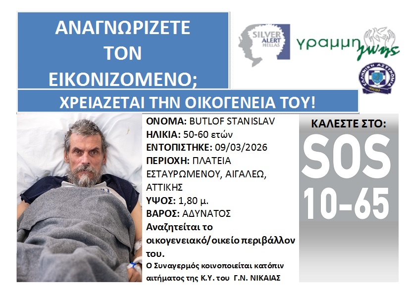 Ο Παύλος Νάκος, 43 ετών, εξαφανίστηκε από το σπίτι του, στη Νέα Πέραμο του Δήμου Μεγαρέων Αττικής, το πρωί της 01/09/25, όταν έφυγε με το Ι.Χ.Ε όχημά του με... περισσότερα»