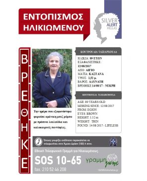 Επέστρεψε σε ασφαλές περιβάλλον ο κος Γεώργιος Κουφόπουλος, που είχε βρεθεί περιπλανώμενος την 31/10/2016. […]