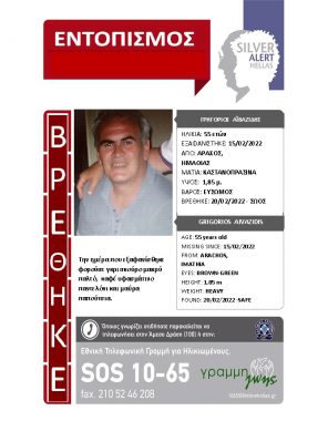 Ευρεθέντες 27 Φεβρουαρίου, 2022 Βρέθηκε σώος! Η περιπέτεια του Αντωνίου Περιβόλα έληξε, δίνοντας αίσιο τέλος στην αγωνία των δικών του ανθρώπων […]