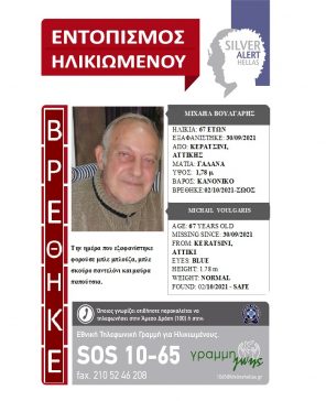 Βρέθηκε σώος από πολίτη που είχε δει το SILVER ALERT