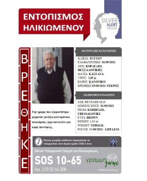 Ευρεθέντες 28 Αυγούστου, 2021 Βρέθηκε σώος! Η περιπέτεια του κ. Παύλου Βοϊδονικόλα έληξε, δίνοντας αίσιο τέλος στην αγωνία των δικών του […]