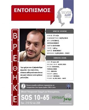Ευρεθέντες 11 Μαΐου, 2021 Βρέθηκε σώος! Η περιπέτεια του κ. Χρήστου Ντόντη έληξε, δίνοντας αίσιο τέλος στην αγωνία των δικών του […]