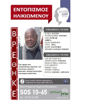 Ευρεθέντες 12 Μαΐου, 2021 Βρέθηκε νεκρός… Δεν είχε αίσιο τέλος η περιπέτεια του Victor Ediagbonya, που είχε χαθεί την 05/05/2021. […]