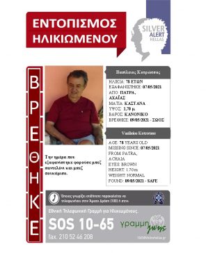 Ευρεθέντες 9 Μαΐου, 2021 Βρέθηκε σώος! Η περιπέτεια του κ. Βασιλείου Κοτρώτσου έληξε, δίνοντας αίσιο τέλος στην αγωνία των δικών του […]