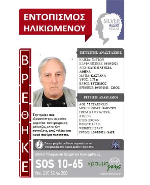 Ευρεθέντες 10 Μαΐου, 2021 Βρέθηκε σώος! Η περιπέτεια του κ. Αναστάσιου Πετσίτη έληξε, δίνοντας αίσιο τέλος στην αγωνία των δικών του […]