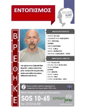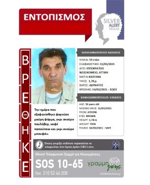 Ξαναβρήκε την οικογένειά της, χάρη στην ενεργοποίηση του SILVER ALERT ΑΓΝΩΣΤΩΝ ΣΤΟΙΧΕΙΩΝ, η κα Ειρήνη […]